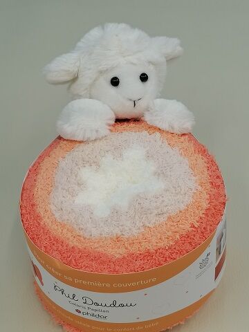 Réalisez une couverture colorée avec cette pelote de 200gr. Cette maxi pelote est fournie avec un doudou MOUTON tout doux et avec les explications au dos de la bande pour réaliser votre couverture de taille 100 X 90 cm. Ce fil 100% polyester à la texture pelucheuse à un toucher peau de pèche très doux. Il est adapté pour la peau sensible de bébé. C’est le cadeau idéal pour une naissance.
